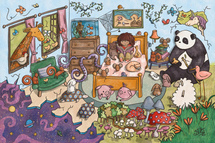 Kleine Laura In Haar Eigen Wereld illustratie • potlood, digitaal